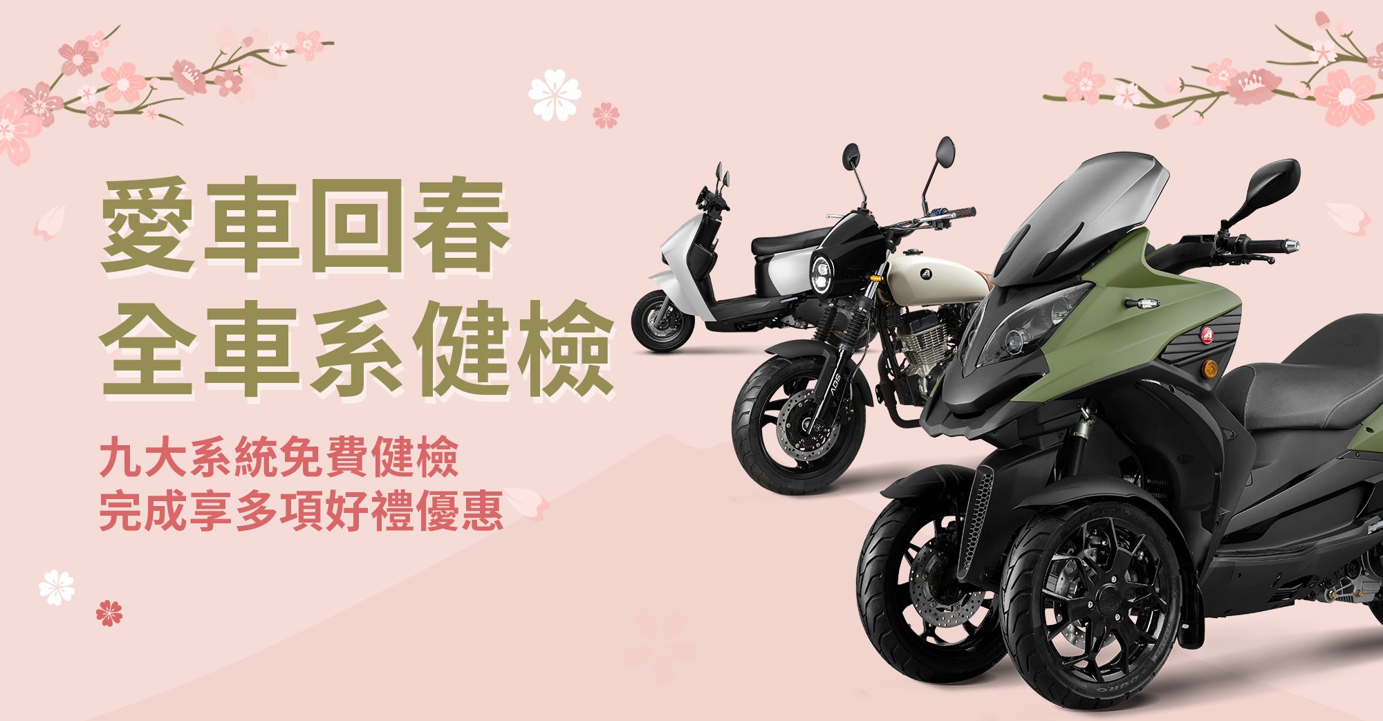 活動期間至全台宏佳騰機車經銷門市即可參加九大系統免費健檢活動。 完成健檢即享三重好康!