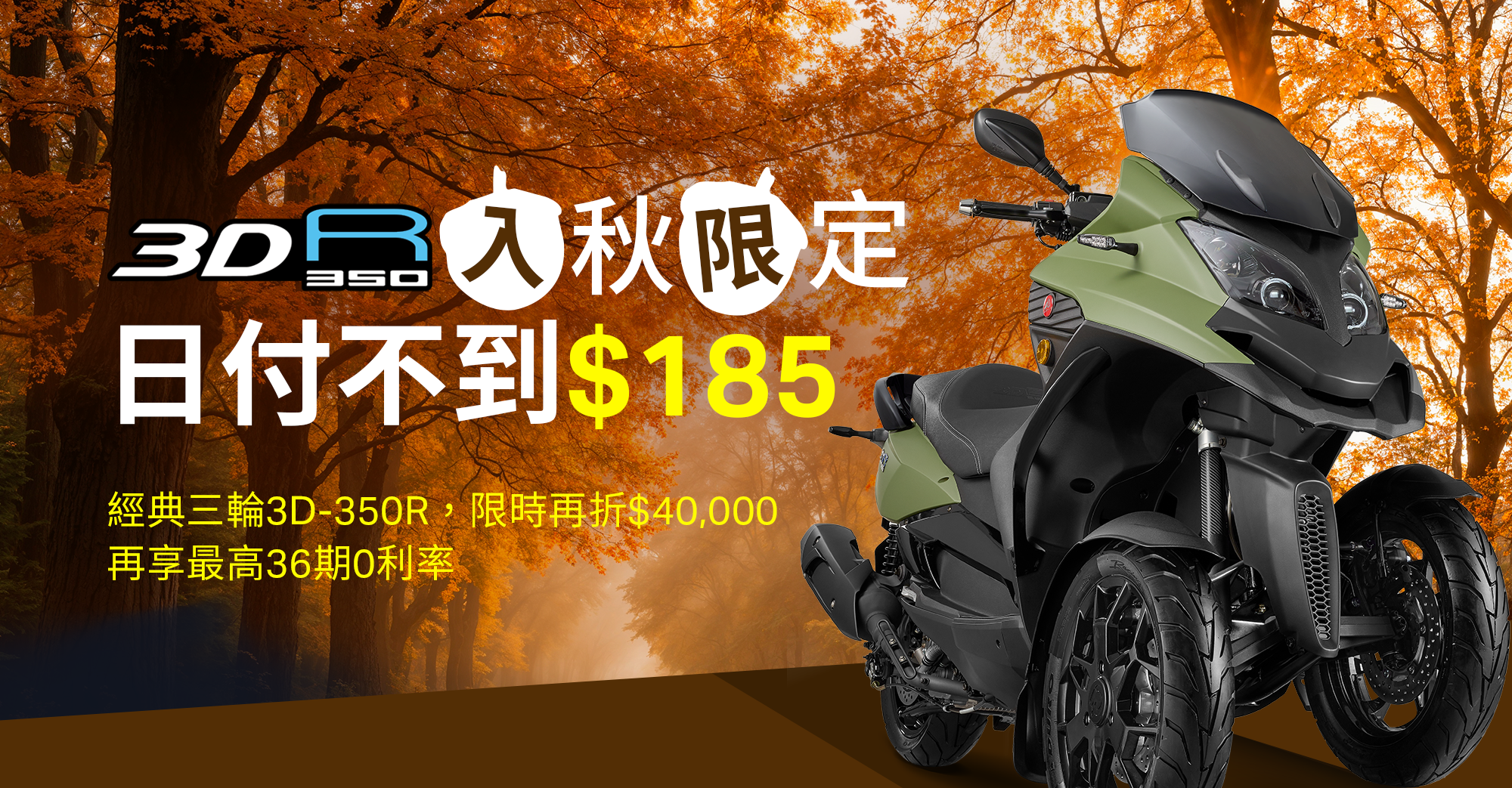 經典三輪3D-350R,享36期零利率,限時再折$40,000