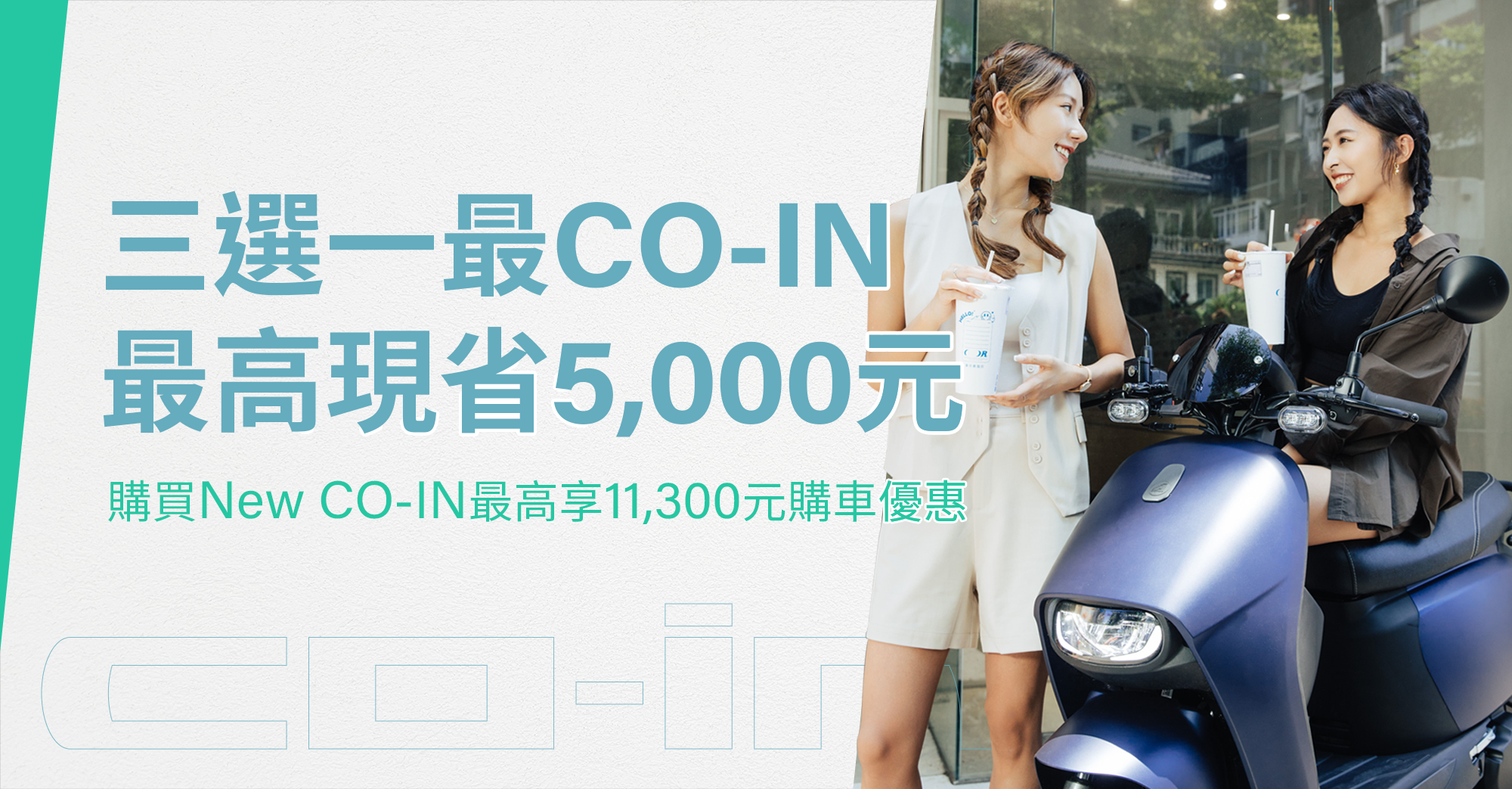購買New CO-IN搭配政府補助最高享11,300元購車優惠