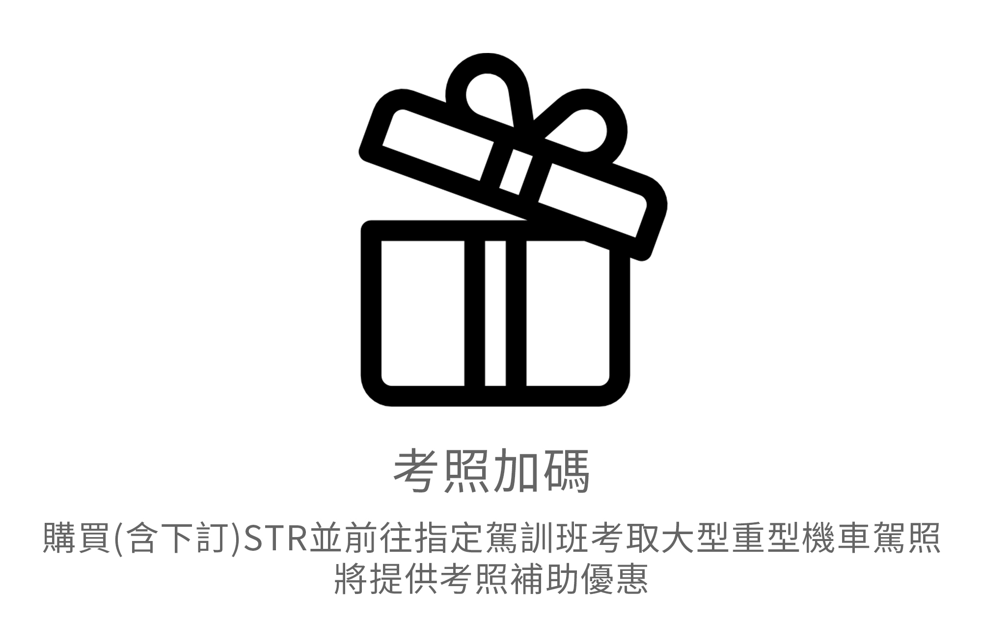 8. 考照優惠補助須攜帶STR訂購單做為佐證,並前往台南 成功駕訓班、台中 高速駕訓班及新北 大明駕訓班進行考照報名,即享有本優惠補助資格。