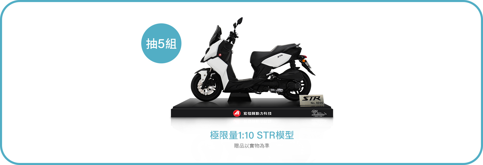 ※ 1:10 STR模型中獎名單將於12/15前公告於官網及「宏佳騰機車」粉絲專頁。