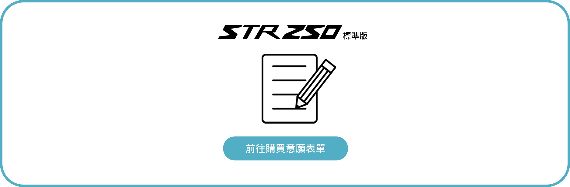 填寫STR 250標準版購買意向表單,即可抽5組極限量1:10 STR模型!