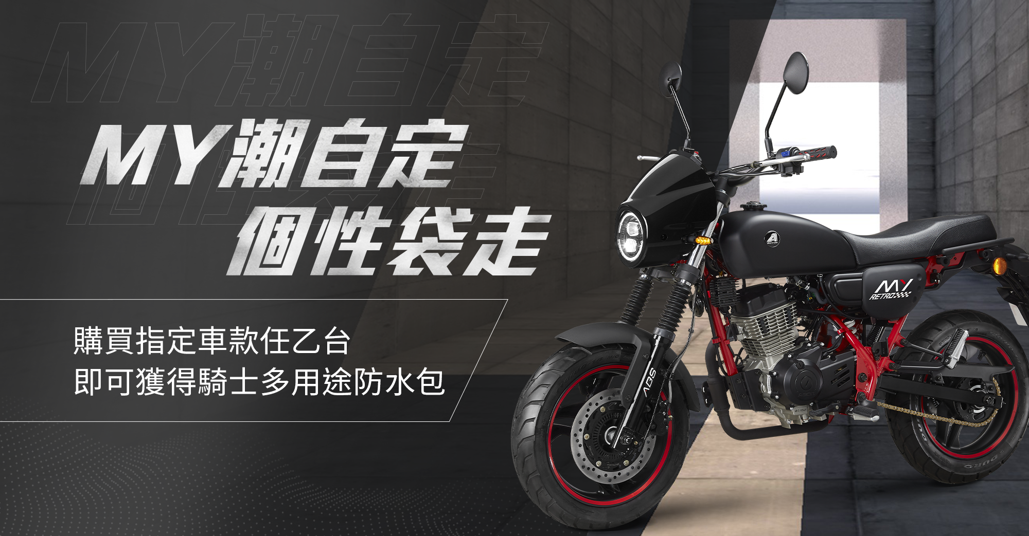 即日起至2023/04/16購買 MY150 RETRO ABS 及 MY150 七期系列車款任乙台,即可獲得價值1,280元的「騎士多用途防水包」(送完為止)