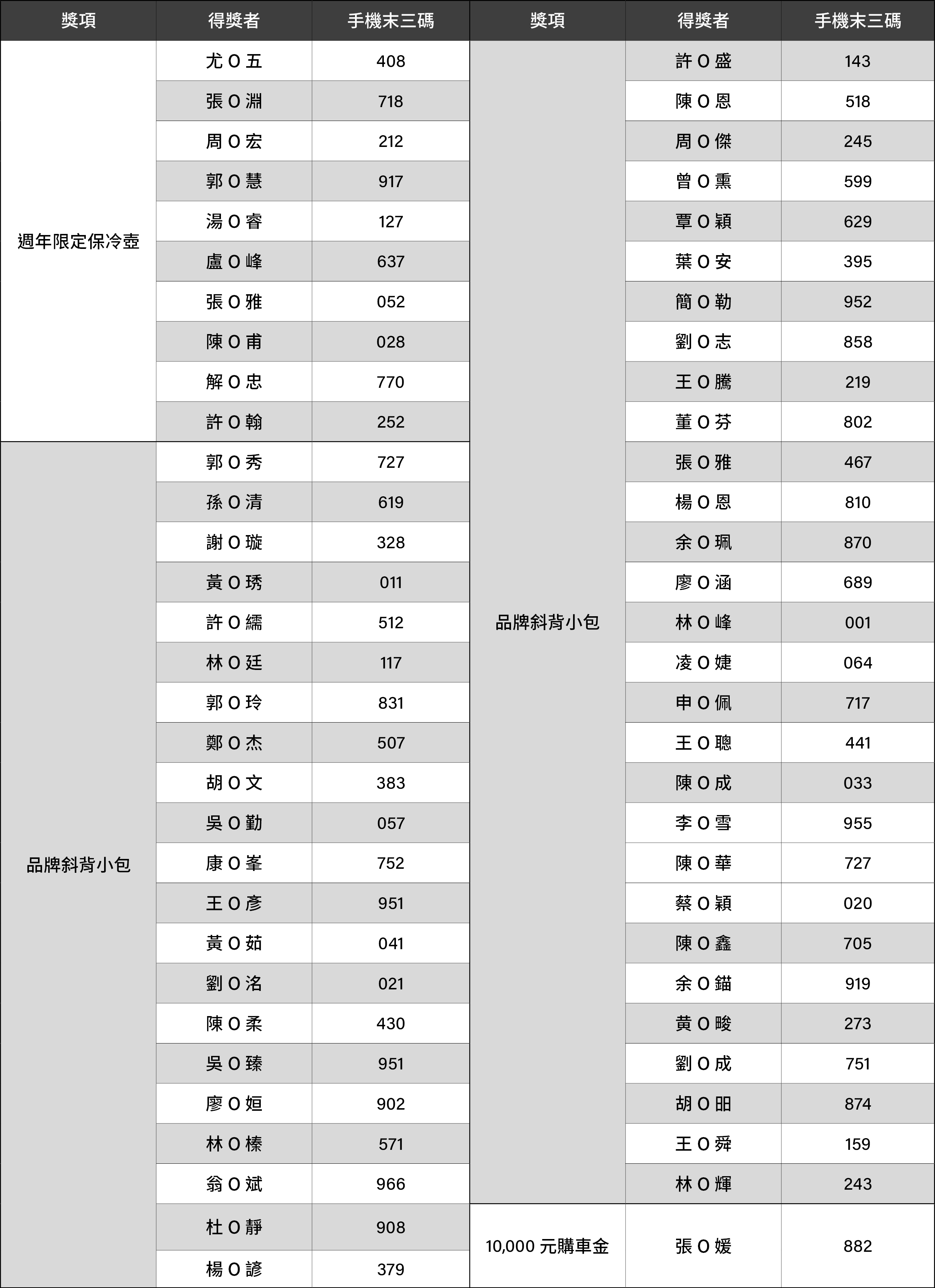 若當週未中獎,可累積至後續繼續抽獎,越早參加,中獎機率越高!本公司將以簡訊公告發送給得獎者,請得獎者留意簡訊通知。