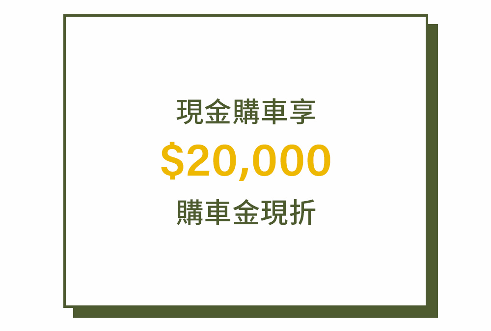 2. 本專案不適用信用卡購車方案,且不得與其他折扣、優惠或活動併同使用。 Aeonmotor 享有決定本活動是否得與 Aeonmotor 之其他活動併同使用之權利。