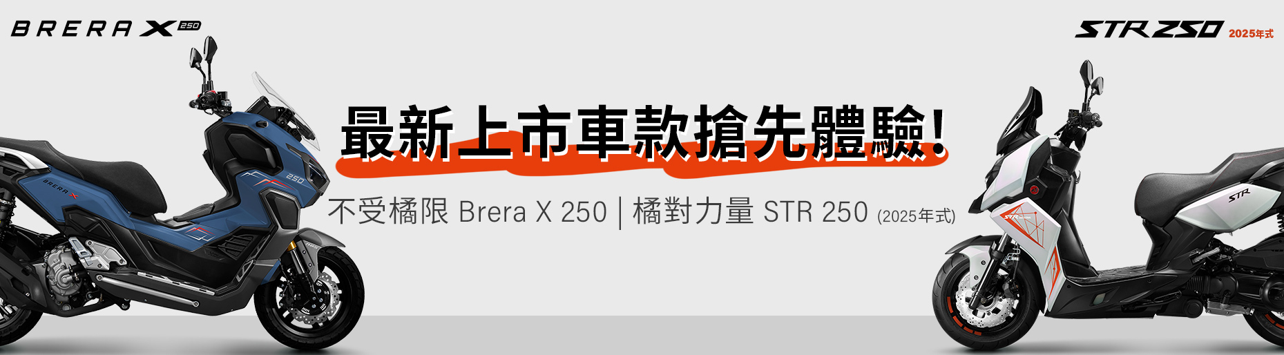 搶先體驗「不受橘限Brera X 250」「橘對力量STR 250(2025年式)」 等最新上市車款