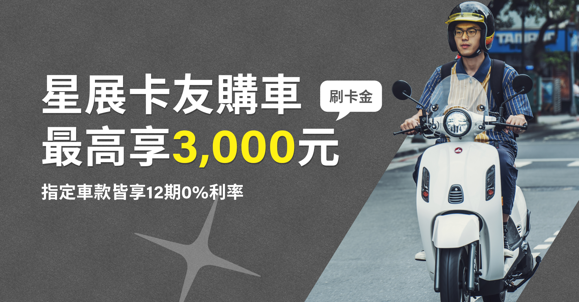 持星展卡至宏佳騰經銷門市刷卡購車,Dory車系/NEW CO-IN 車系/MY 150車系享最高12期0%利率!
