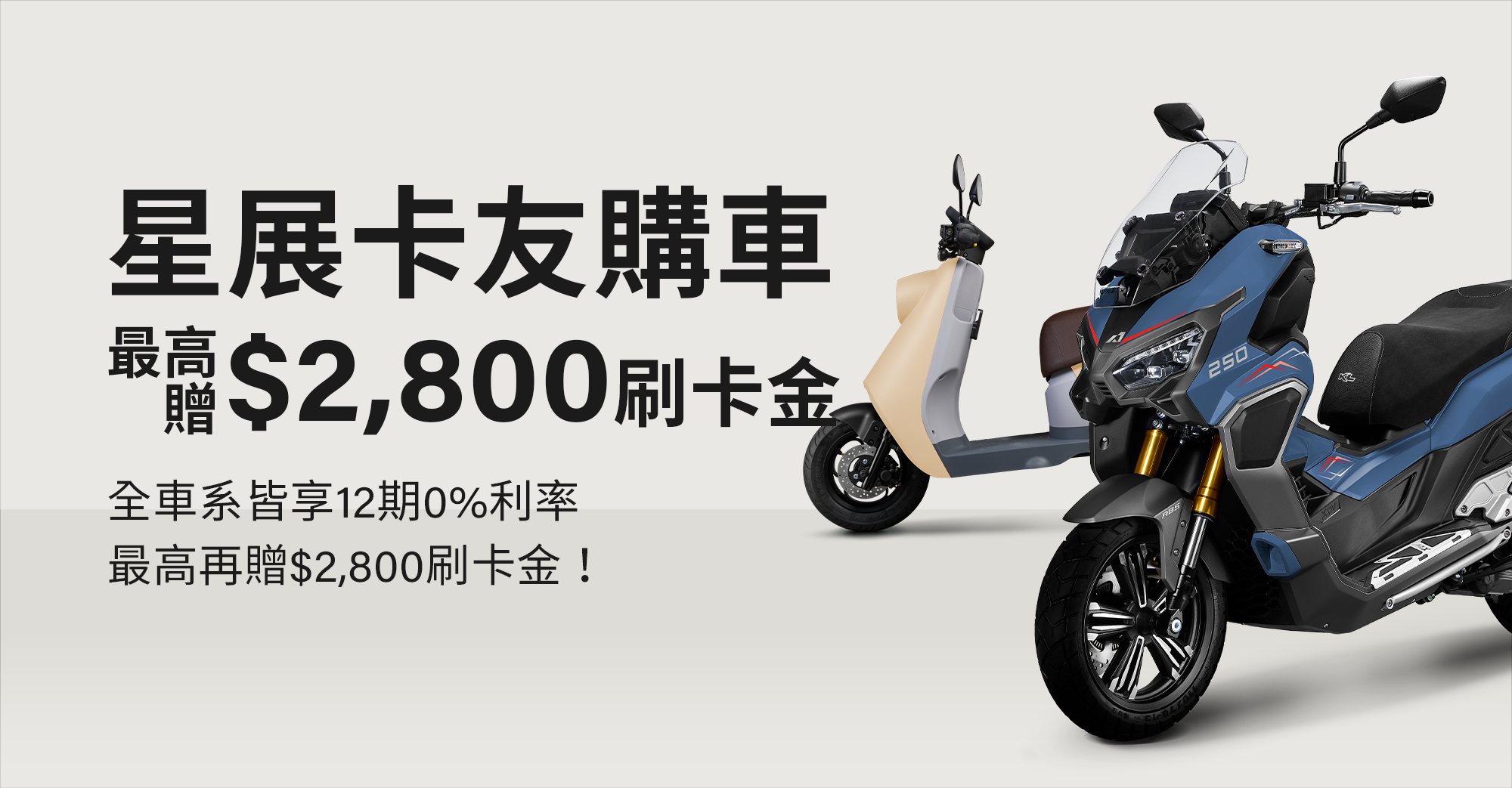 持星展卡至宏佳騰經銷門市刷卡購車,全車系皆享最高12期0%利率!