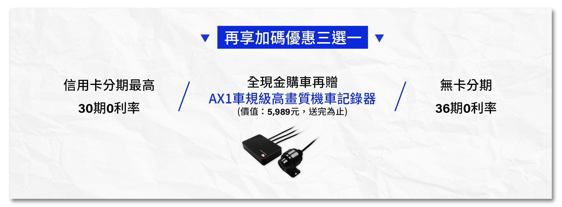 全現金購車再贈 AX1車規級高畫質機車記錄器