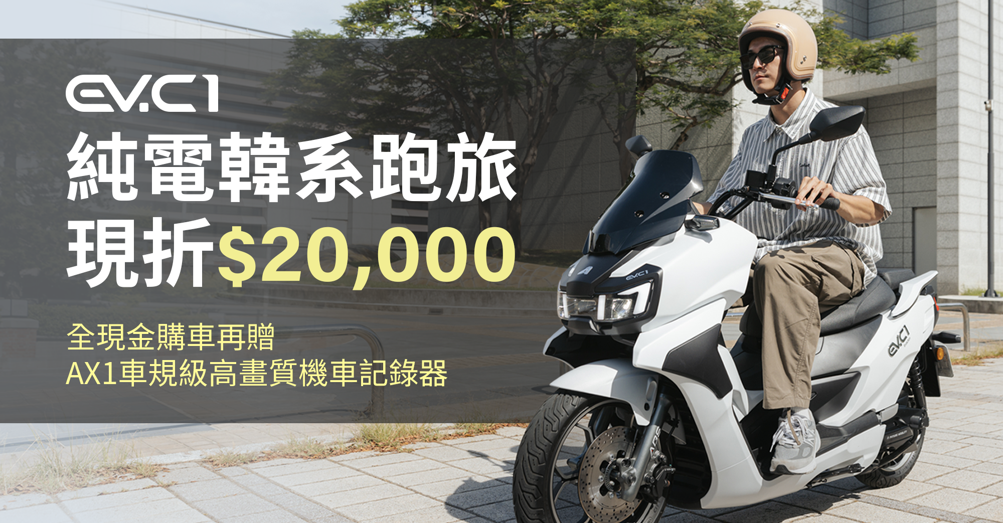 1. 參加人(須非法人或相關團體)於 2025年09月01日至2025年12月31日 (下稱「活動期間」),於 Aeontek門市或授權通路經銷門市,購買EV-C1電動機車,付清全額車價(需於活動期間建立訂單並開立發票),即可獲得20,000元購車折扣(以下稱優惠)。