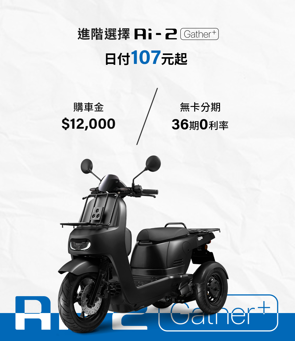 1. 參加人(須非法人或相關團體)於 2026年01月01日至2026年01月31日 (下稱「活動期間」),於 Aeontek門市或授權通路經銷門市,購買指定車款,付清全額車價(需於活動期間建立訂單並開立發票),Ai-2 Gather+可享「12,000元購車金」,Ai-2 Gather可享「6,000元購車金」