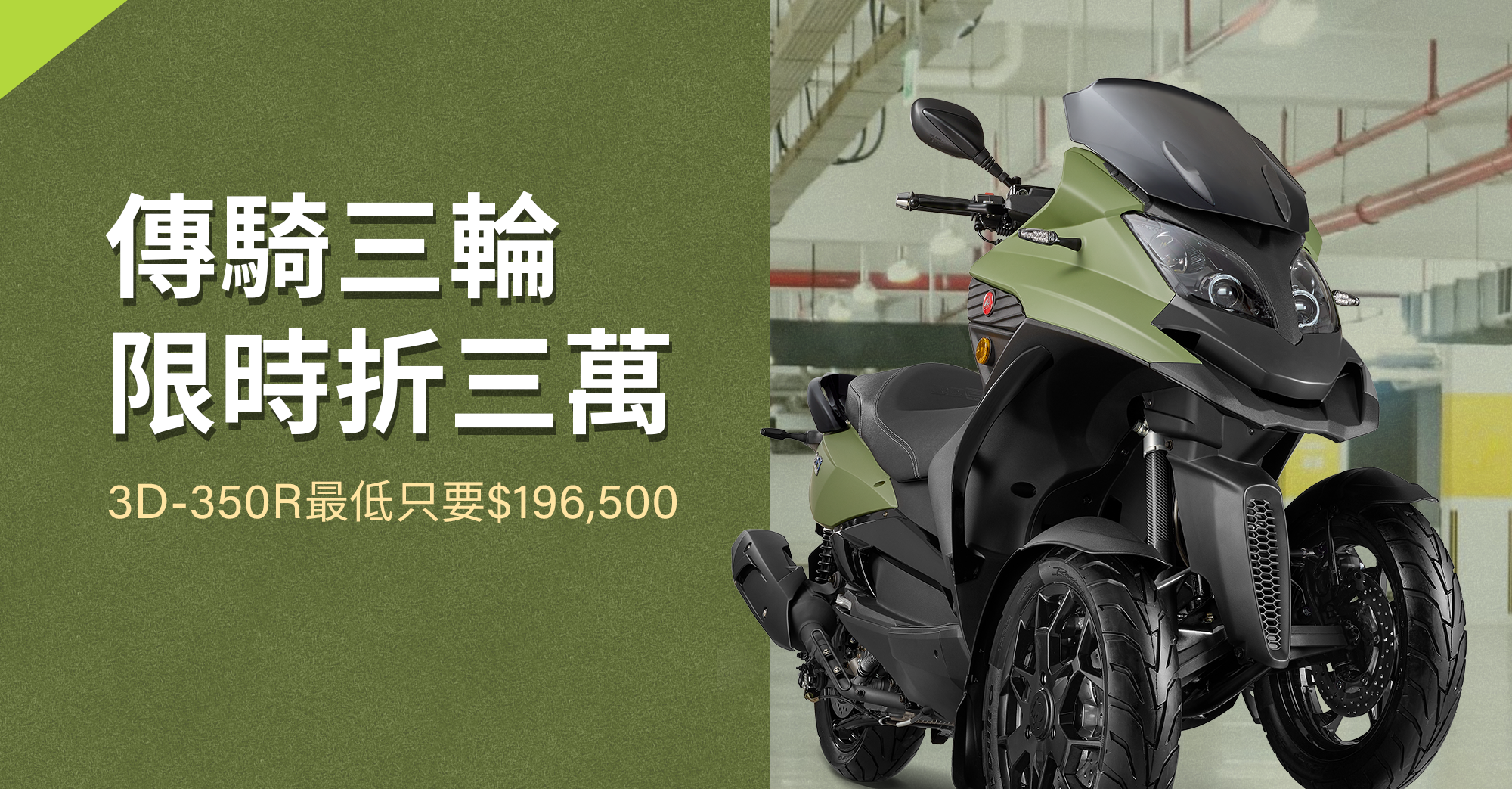3D-350R以三輪一面穩定特性及專利HTS液壓傾斜系統,絕佳騎乘與許多車友創造美好回憶,