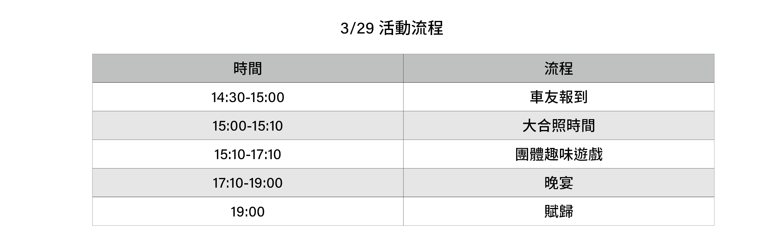 5. 本次活動地點路途遙遠,為確保活動品質及安全,請於活動開始前,預約返回官方指定經銷門市進行保養
