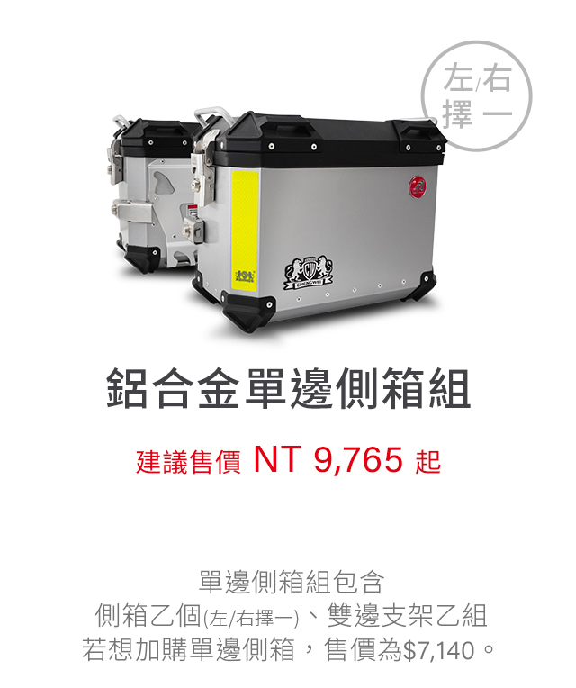 * 為了您的安全著想,安裝箱組時,騎乘請維持在安全時速。
