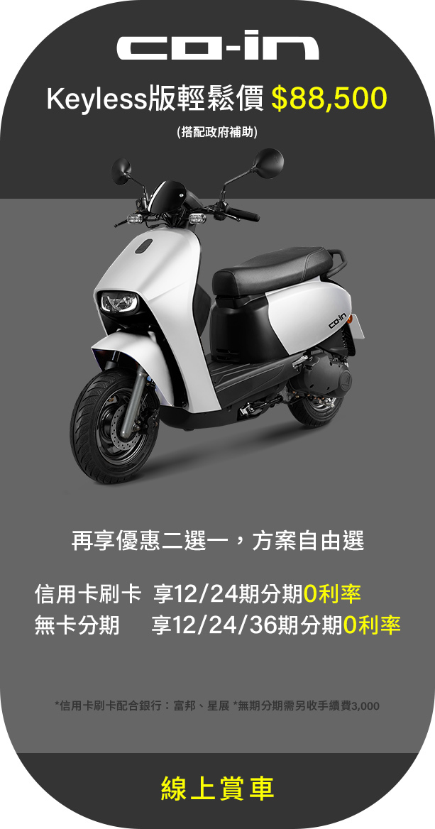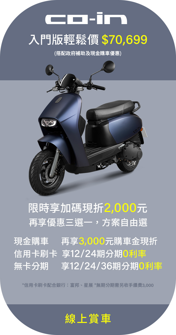 2. 本專案不得與其他折扣、優惠或活動併同使用。 Aeonmotor 享有決定本活動是否得與 Aeonmotor 之其他活動併同使用之權利。