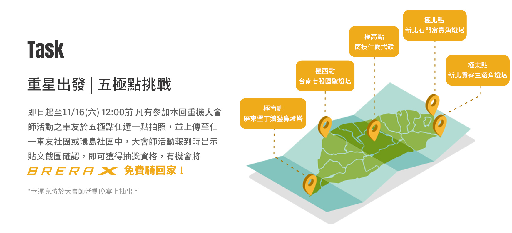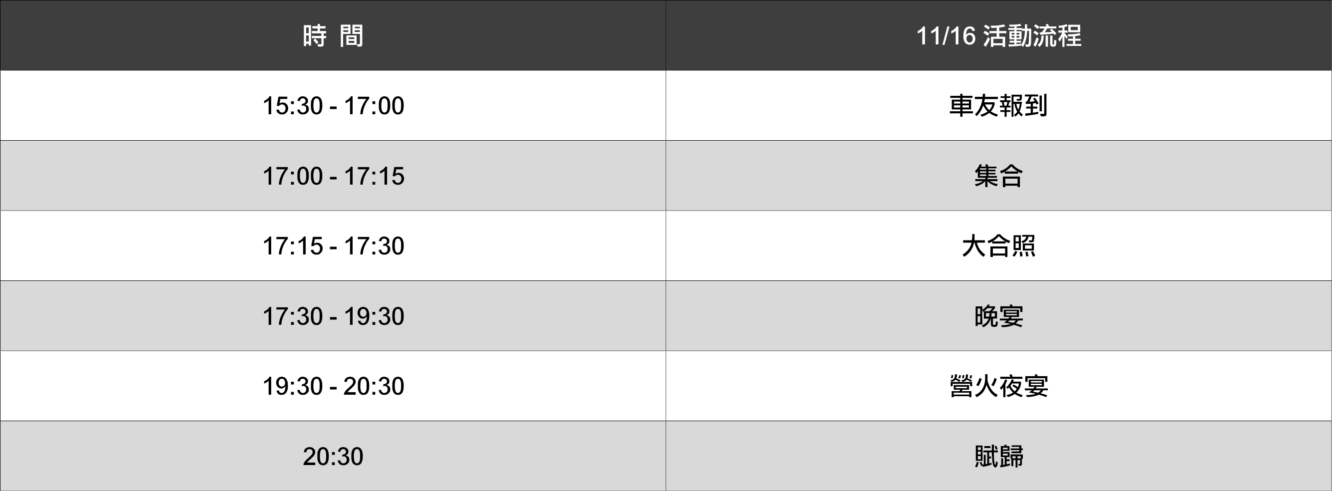 6.本次活動地點路途遙遠,為確保活動品質及安全,請於活動開始前,預約返回官方指定經銷門市進行保養