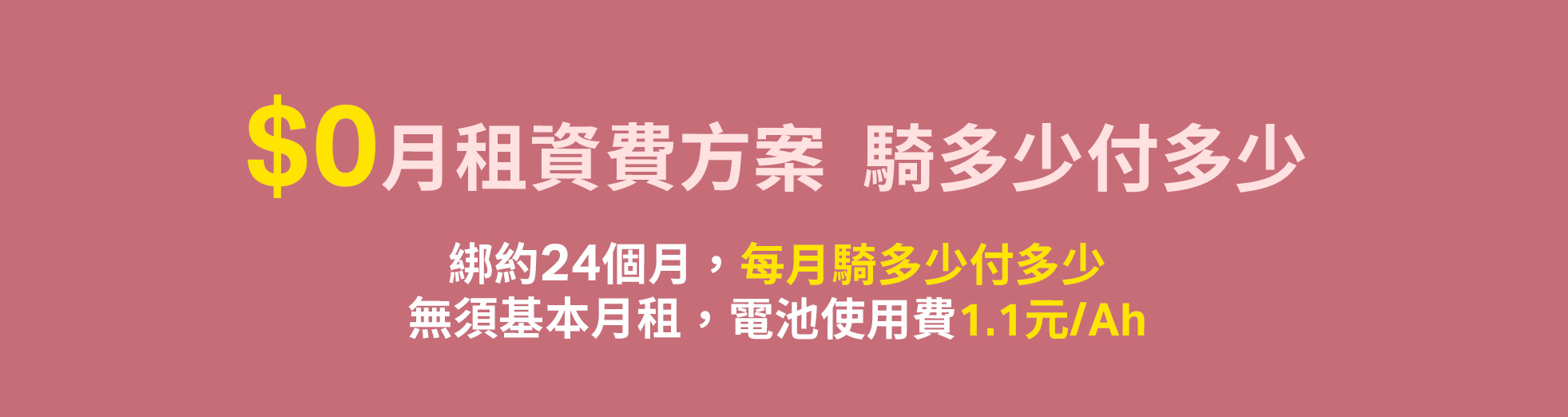 3-1.本方案「$0月租資費方案(綁約 24 個月,單顆電池)」為單顆電池驅動之二輪電動機車車款可選用。選購者於綁約期間內,使用者不得變更資費方案。違者須給付違約金,本方案「$0月租資費方案(綁約 24 個月,單顆電池)」違約金以新臺幣(下同)$4,800 x (綁約期間剩餘天數 / 730 天) 計算。