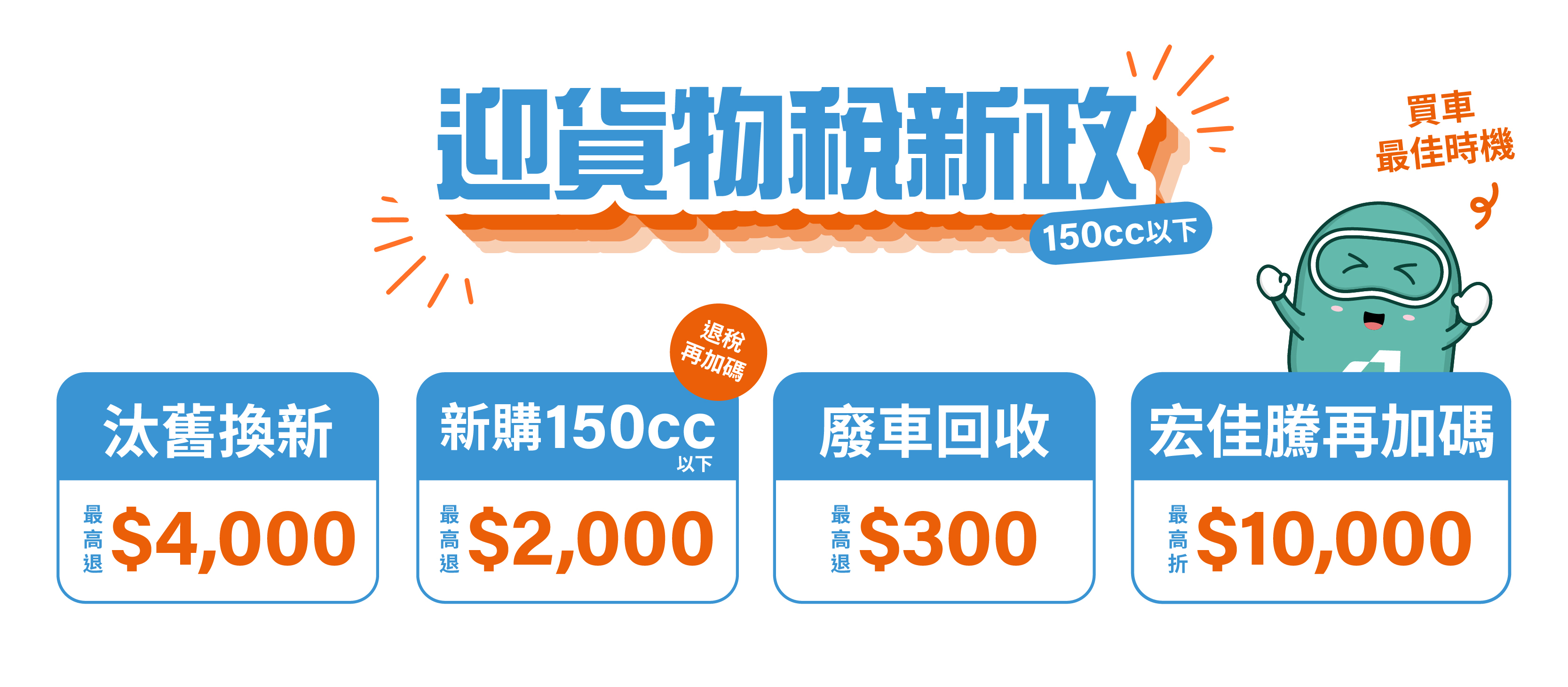 力挺政府貨物稅補助,宏佳騰再加碼$2,000