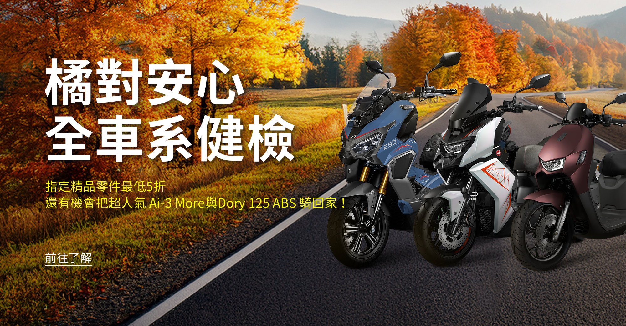 指定精品零件最低5折,還有機會把超人氣Ai-3 More與Dory 125 ABS 騎回家!