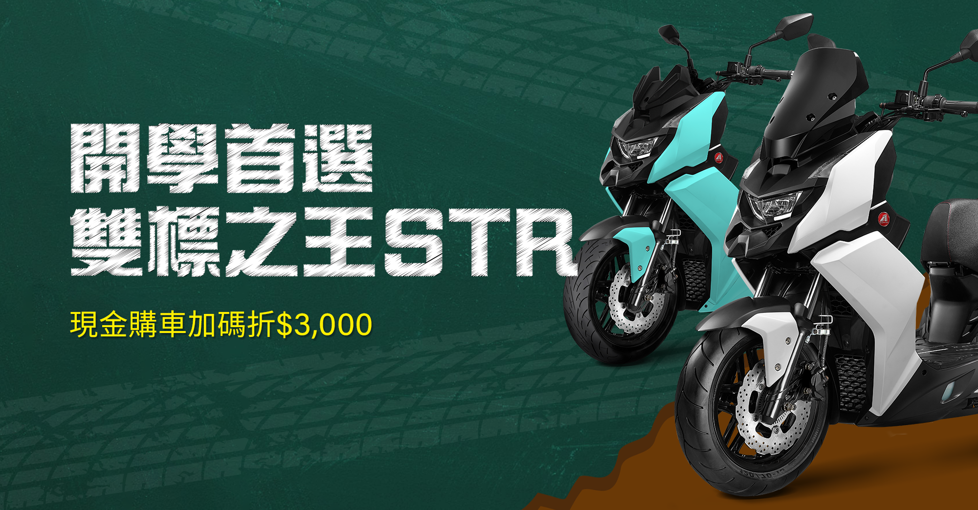 1. 即日起-2024/09/30,參加人(須非法人或相關團體)於 Aeonmotor門市或授權通路經銷門市,購買STR250/STR300車款可獲得本專案優惠。