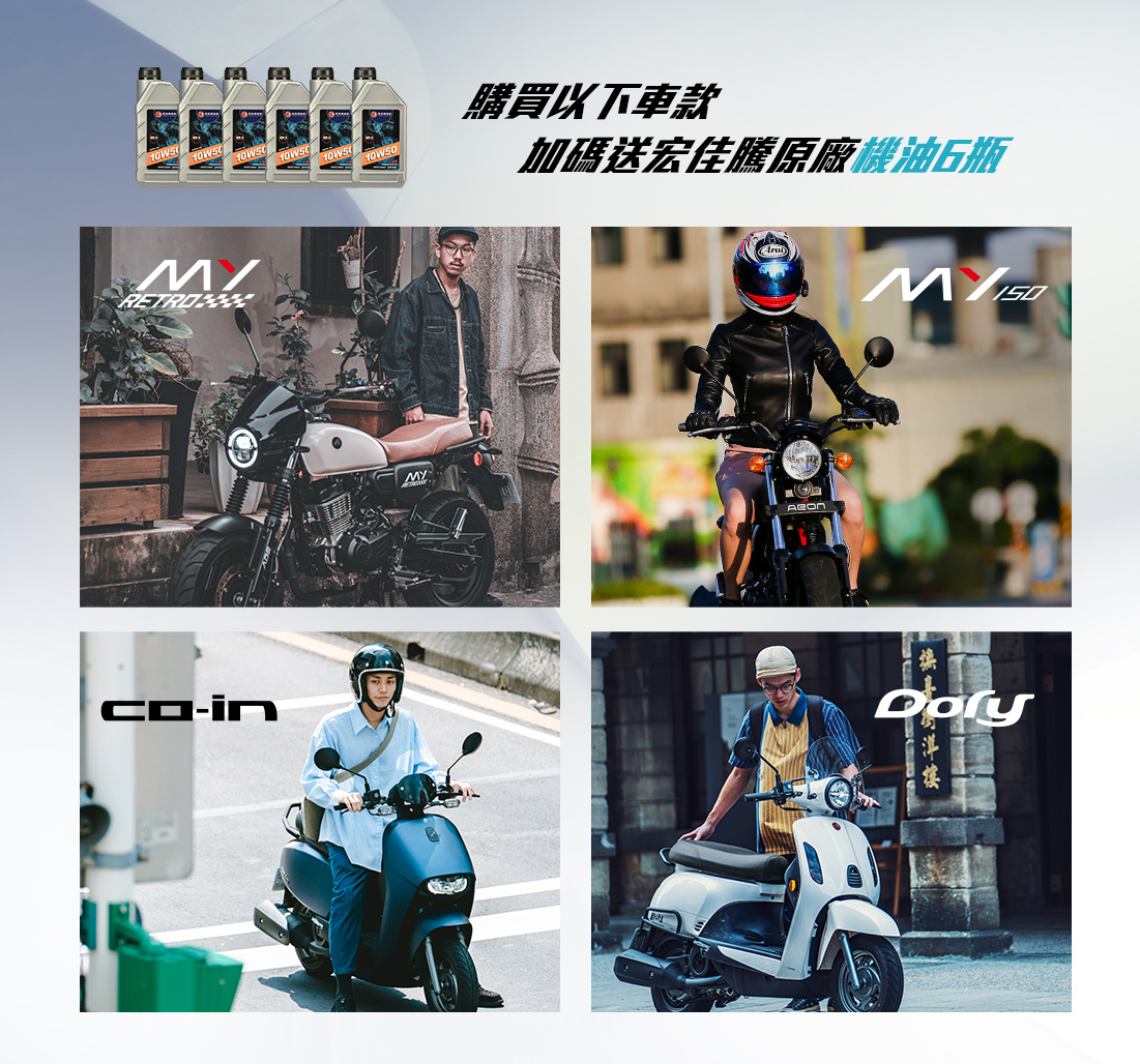 1. 參加人(須非法人或相關團體)於 2024年07月01日至2024年08月31日 (下稱「活動期間」),於 Aeonmotor門市或授權通路經銷門市,購買宏佳騰機車指定車款,付清全額車價(需於活動期間建立訂單並開立發票),享同期品牌促銷優惠活動,憑學生證購車再加碼贈送6瓶機油。